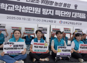 全教組はこの日、全北教育庁前で座り込み突入を宣言した。パク・ヨンファン委員長は「全北のある学校で起きている悪性嘆願は、教師たちの人生を破壊し、教育共同体まで根こそぎ揺さぶっている。全国の教師たちが経験する苦痛の象徴」とし、「守らなくても良い教権保護委員会の措置は無力で、何の不利益もない措置は悪性苦情を続けさせる」と指摘した。