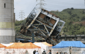 崩れたボイラータワーは、発電するためのタービンを回転するのに使う蒸気を作る構造物で、1981年に竣工し、40年近く稼動した。2021年に使用が中止され、先月から撤去作業が行われていることが判った。