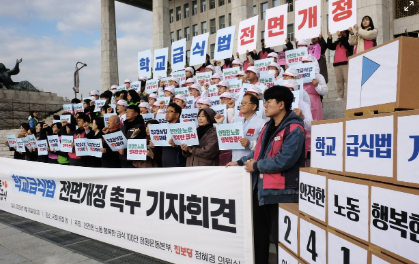 運動本部は「24万請願人と国民の意思を集めて、国会と政府に強く要求する。」「人をすり潰して作る給食は持続可能ではない。労働強度を下げて、安全を担保できる人材配置基準を明示しなければならない」と強調した。