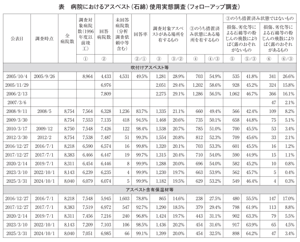 【病院建築物における石綿使用実態調査】病院の2割にいまも残るアスベスト-最新の使用実態フォローアップ調査結果