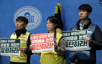 サービス連盟と進歩党のチョン・ヘギョン議員はこの日、国会のコミュニケーションセンターで記者会見を行い、「流通市場に必要なのは深夜配送の拡大ではなく、崩れた規制を正すことだ」「オフラインの大型スーパーの労働者たちまで、深夜労働の現場に押し込めてはいけない」と訴えた。
