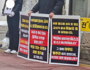 更に「政府は予算と人員を理由に幼児教育を放置してきた」「代替要員なしで教師一人に全ての責任を押し付ける、『独りで教室を担当する』構造を、これ以上放置すべきではない」と明らかにした。全教組は、感染症が発生した際に、教員の病欠取得を法的に義務付け、実効性のある代替人員体制を整備すべきだと要求した。