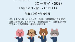メンタル労災・ハラスメント全国一斉ほっとライン:0120-631-202【10月10日、11日】やります!